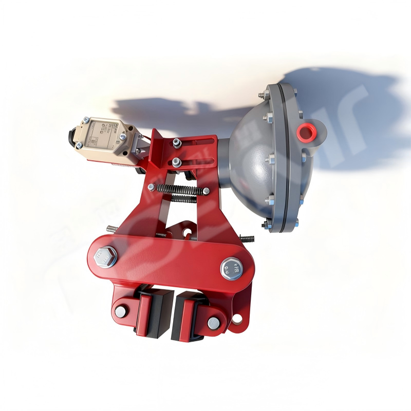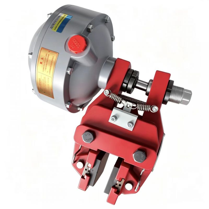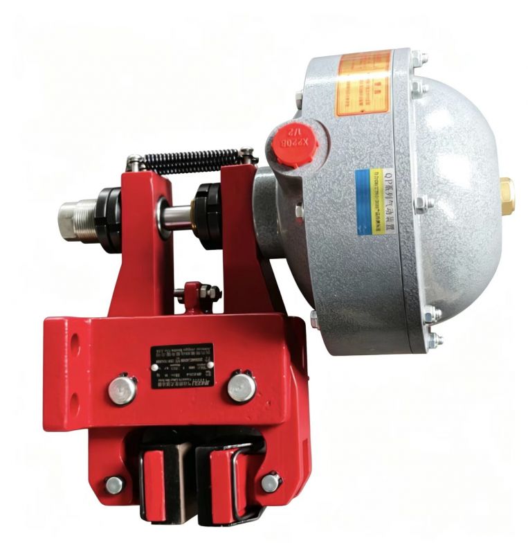 ▲ 所有动力源无需单独设置,可与已有的空压站并网使用,在供气线路中加装调速阀,制动时间可实现无级调整。